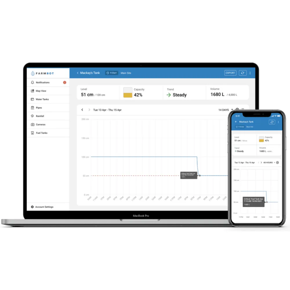 Farmbot’s Diesel Level Sensor helps you monitor diesel usage accurately by tracking withdrawal frequency and alerting you to unusual activity. Improve your inventory management and prevent unexpected shortages with real-time insights and notifications.