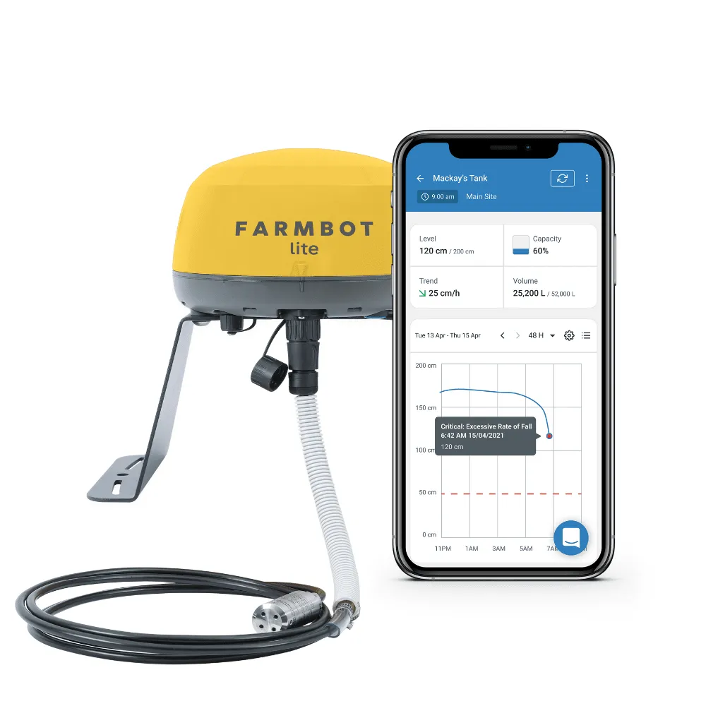 Farmbot Diesel lite offers effortless remote monitoring of your diesel tanks, giving you peace of mind with near real-time alerts on fuel usage and rapid level drops. Access your diesel data anytime, anywhere through MyFarmbot, via satellite connectivity, and backed by Aussie support.