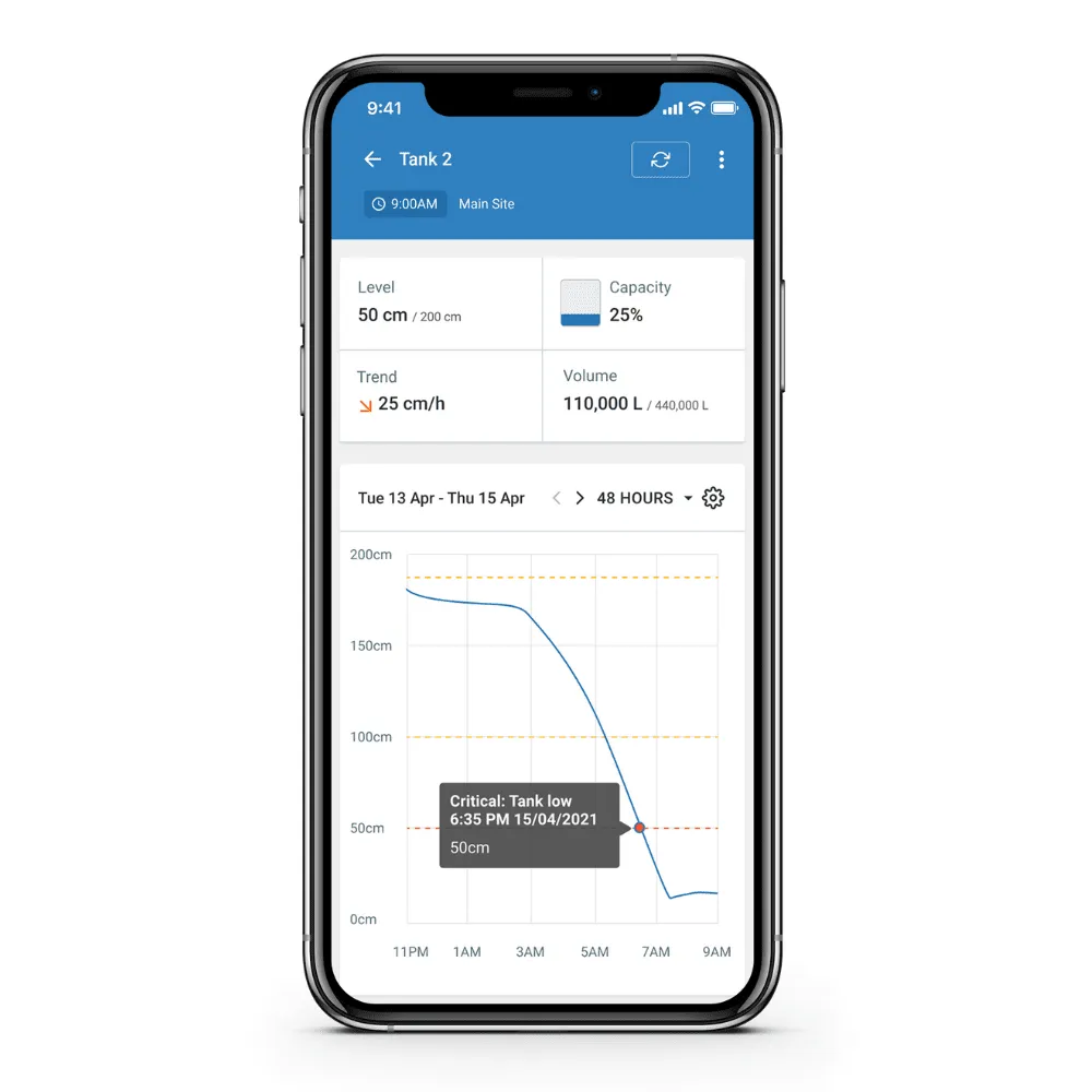 - Instant SMS and/or email alerts for tank level changes